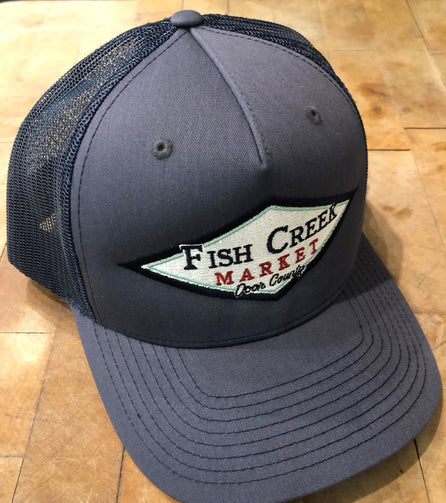 Classic trucker hat with an adjustable snapback closure. Navy color, one size fits most. Complete with our FCM diamond logo, expertly embroidered with love right here in Fish Creek, by our friends at Hat Head!